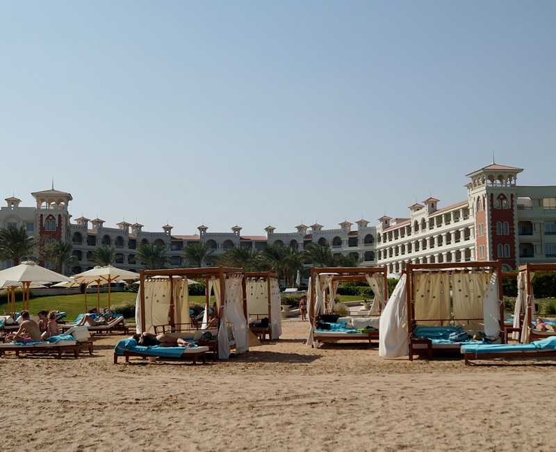 Está situado en el centro de la bahía de Sahl Hasheesh, en una playa de arena privada de más de 600 m², es un establecimiento de lujo que ofrece piscinas de borde infinito azules (climatizadas en invierno) con vistas despejadas excepcionales al mar.